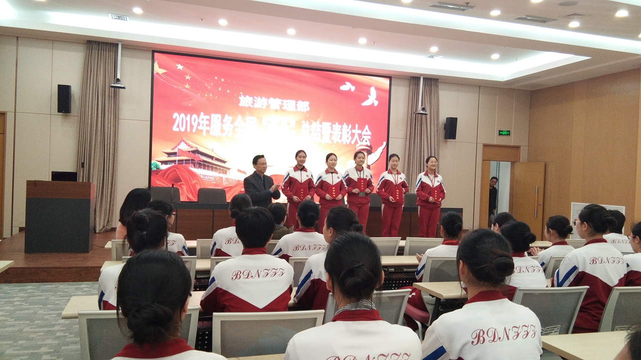 3月28日下午第四节课,旅游管理部在学校报告厅召开了2019年服务全国“两会”总结暨表彰大会,校党总支书记、校长韩志清应邀参加了本次活动。