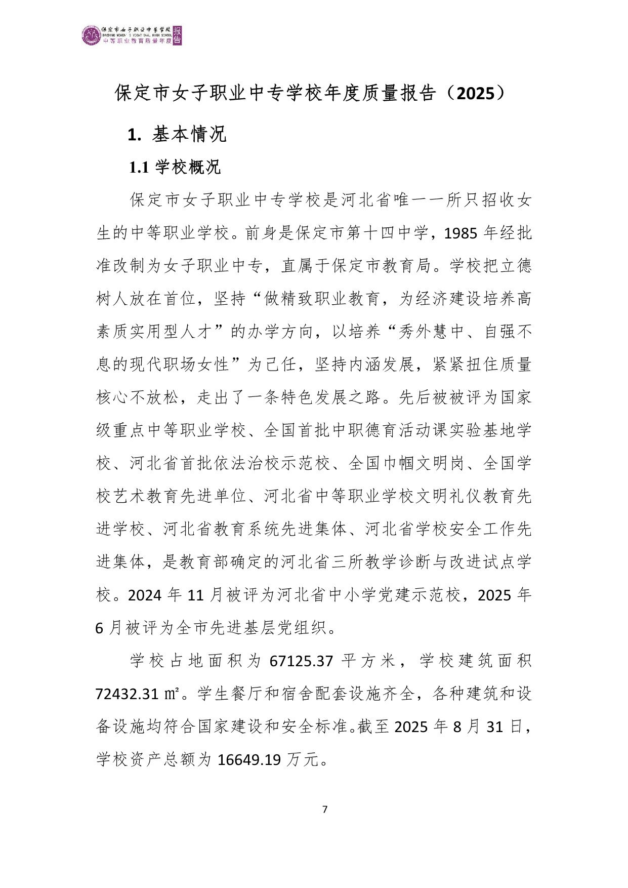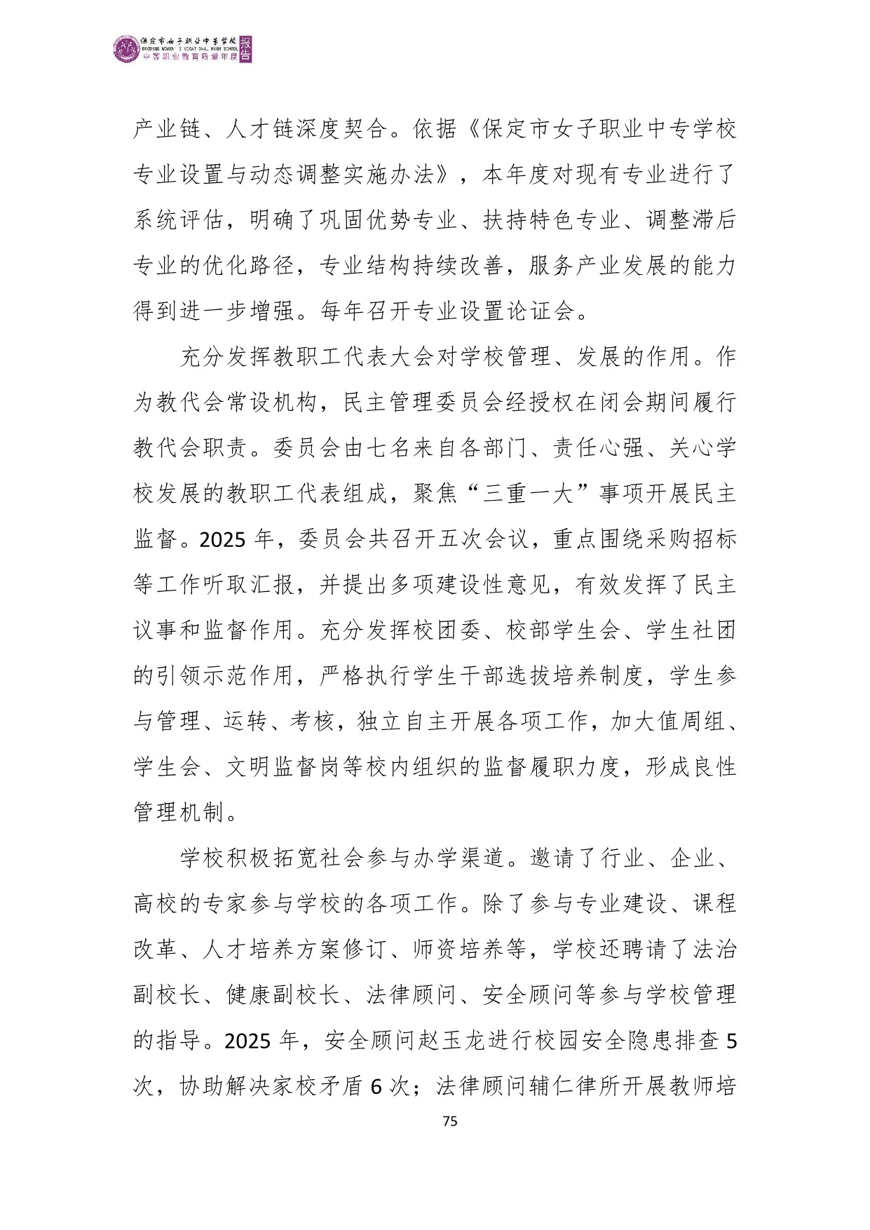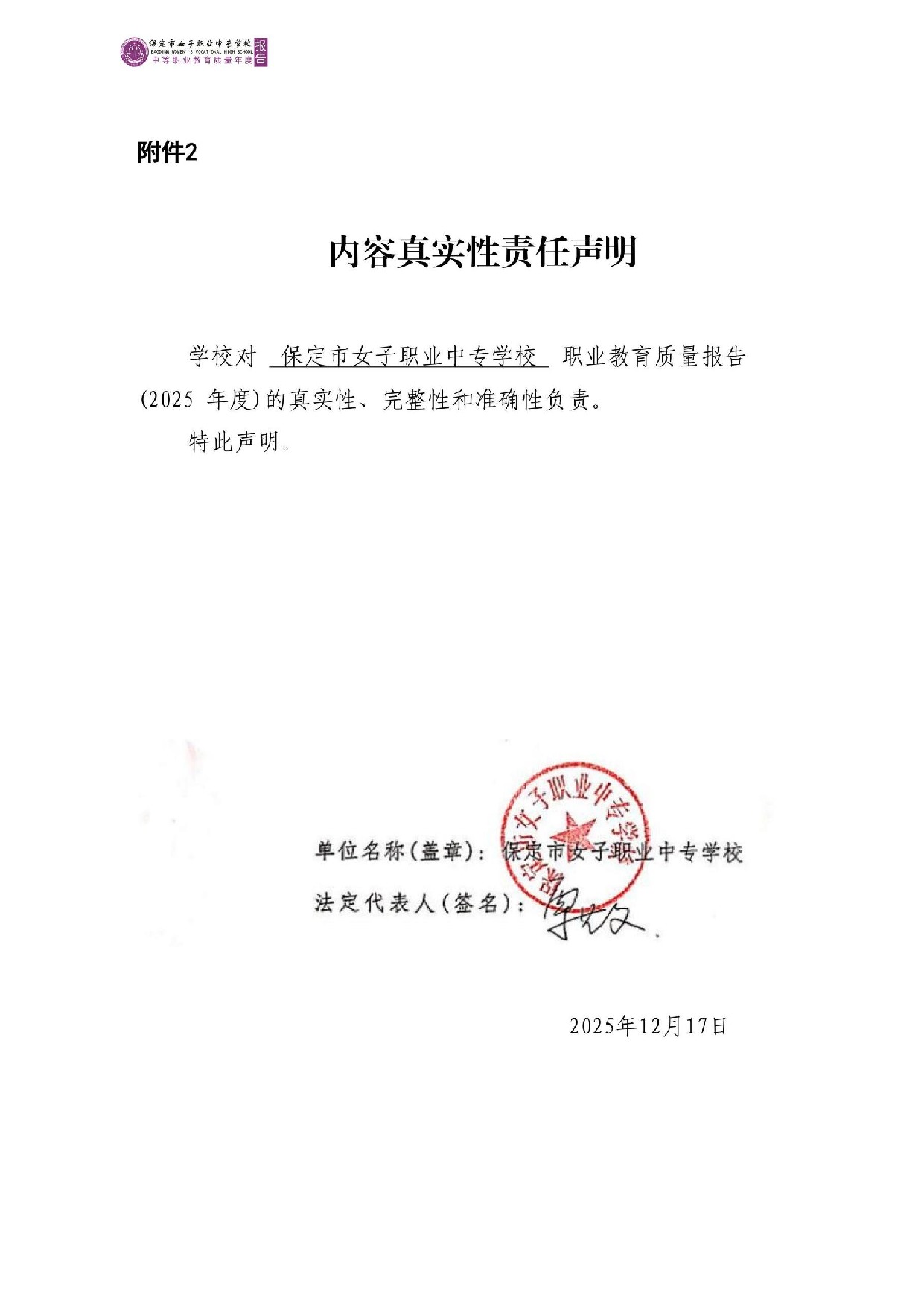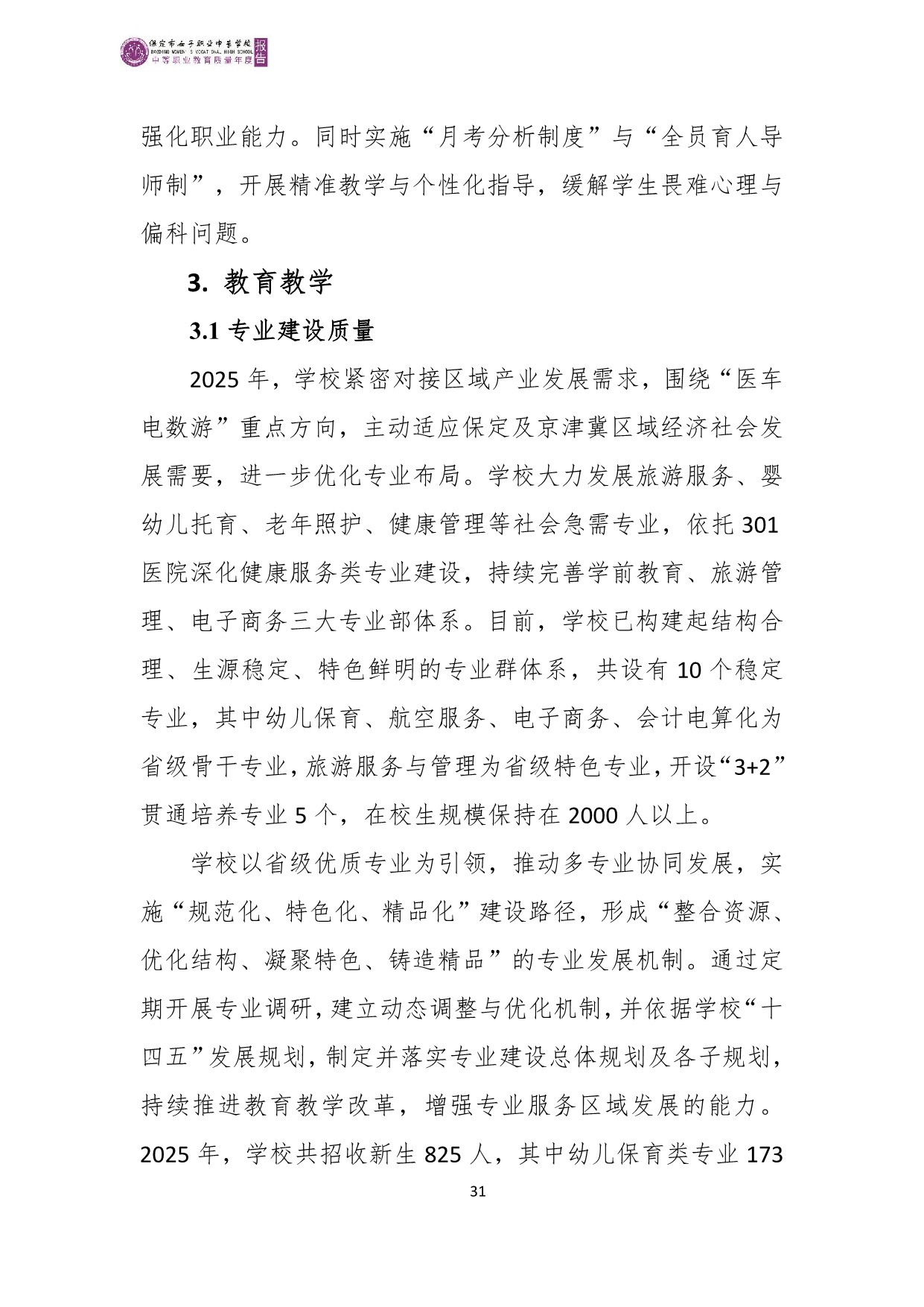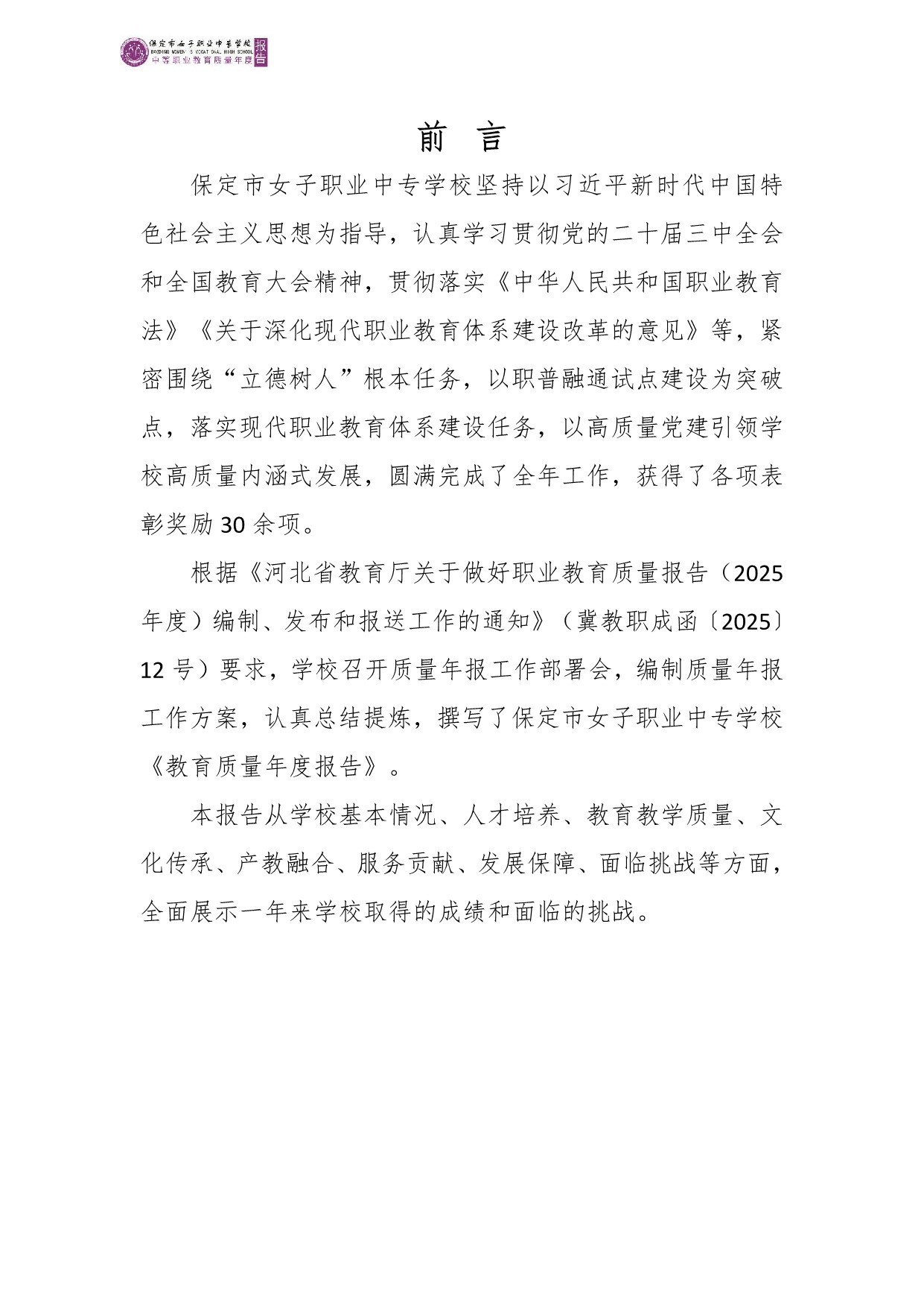 保定市女子职业中专学校2025年度质量报告