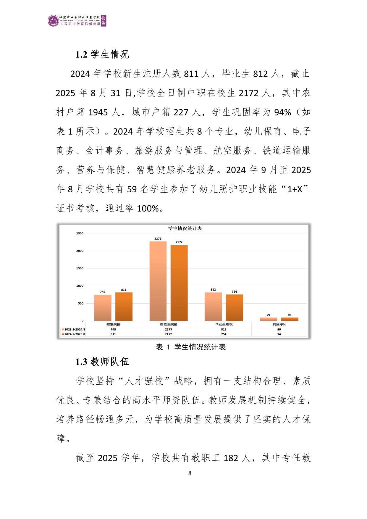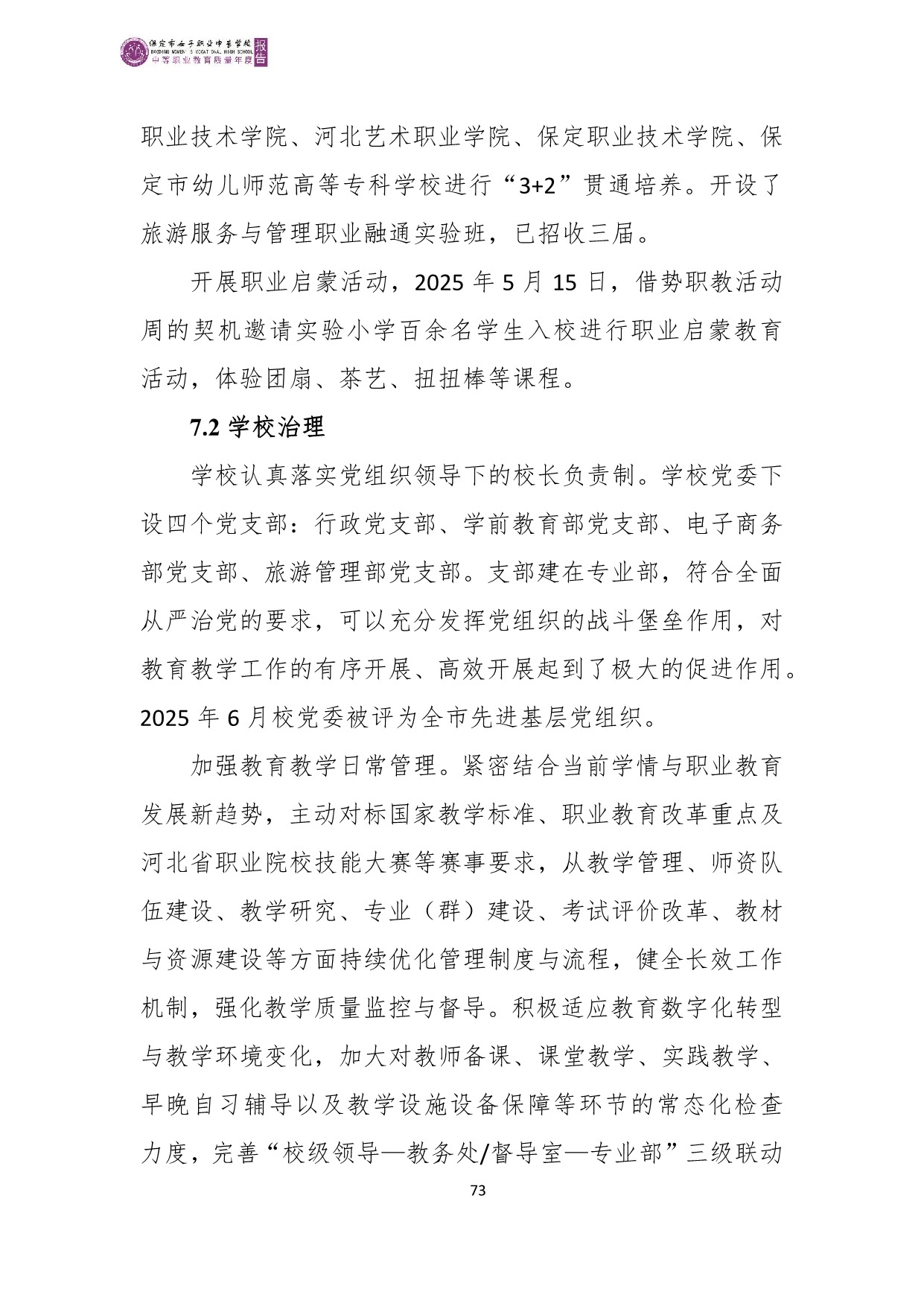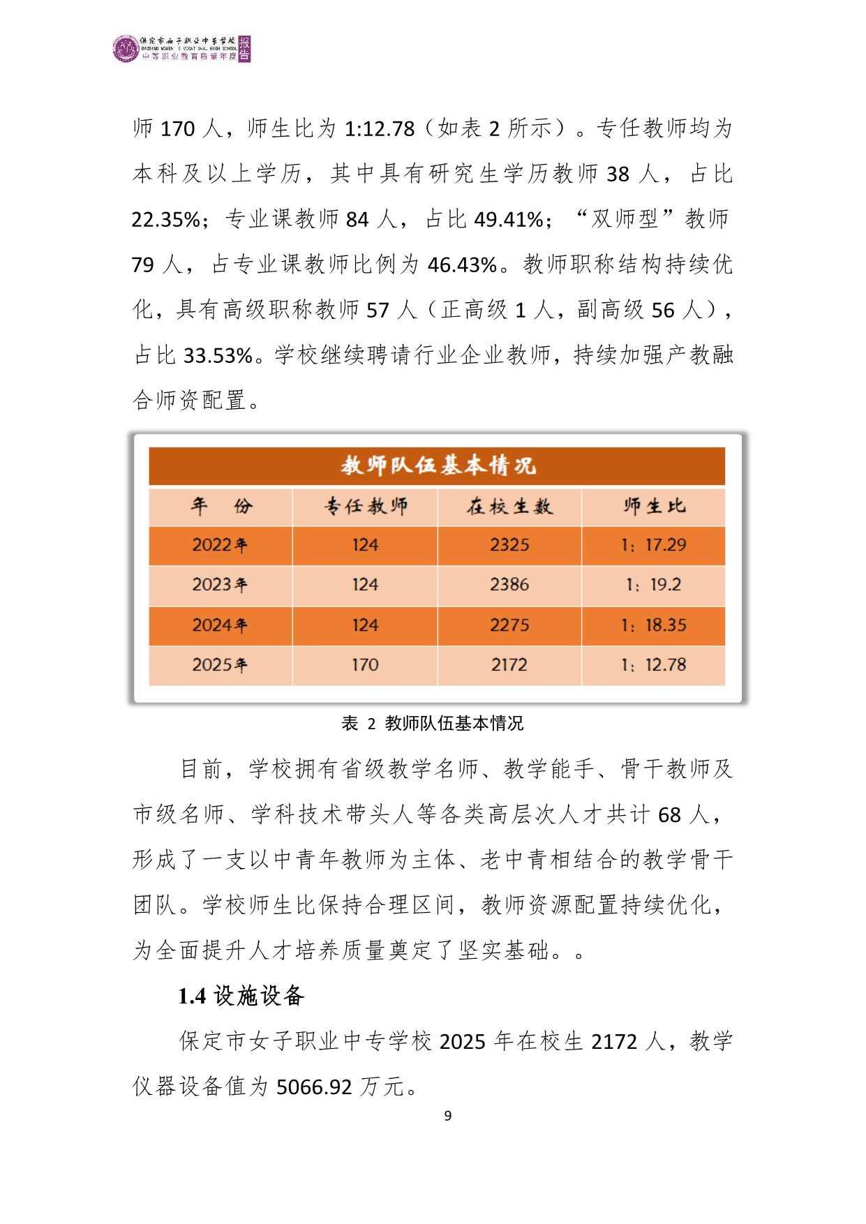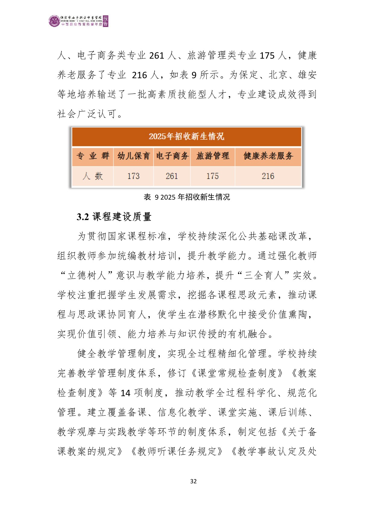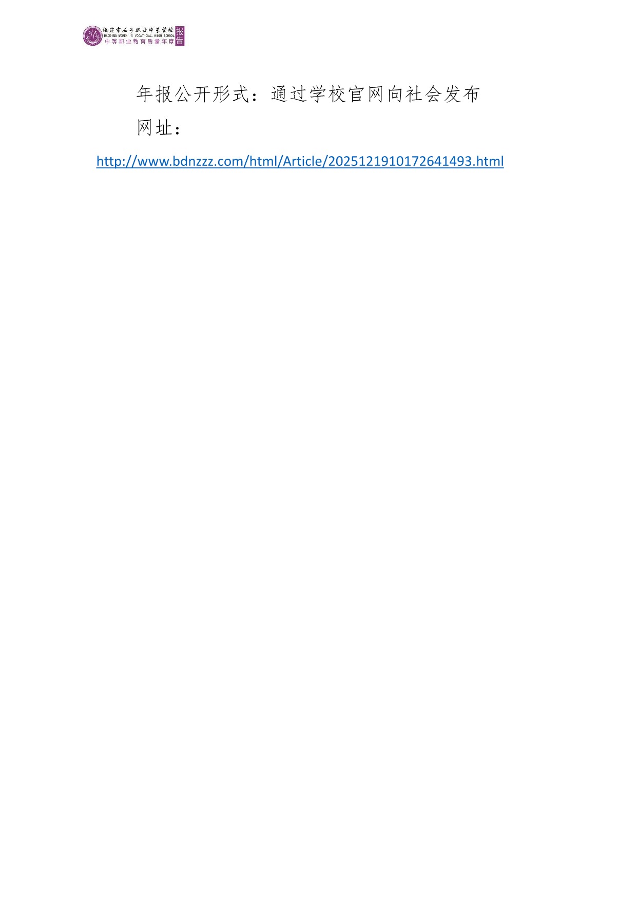 保定市女子职业中专学校2025年度质量报告