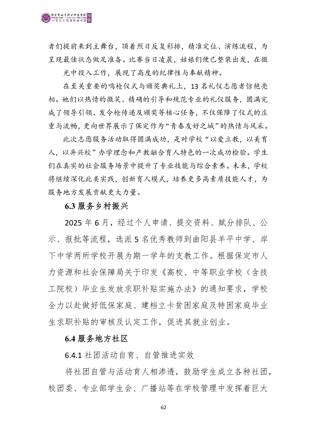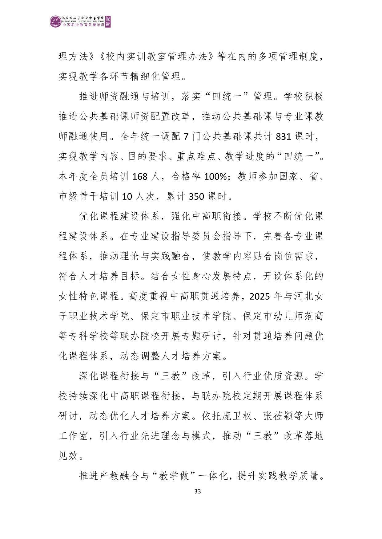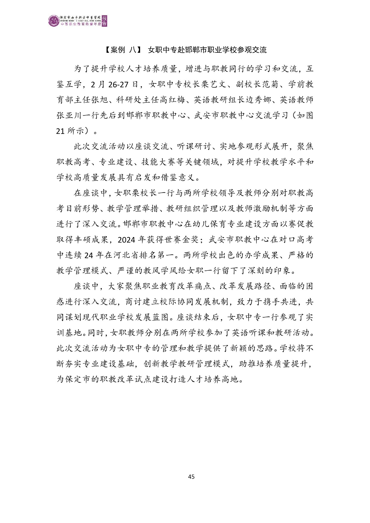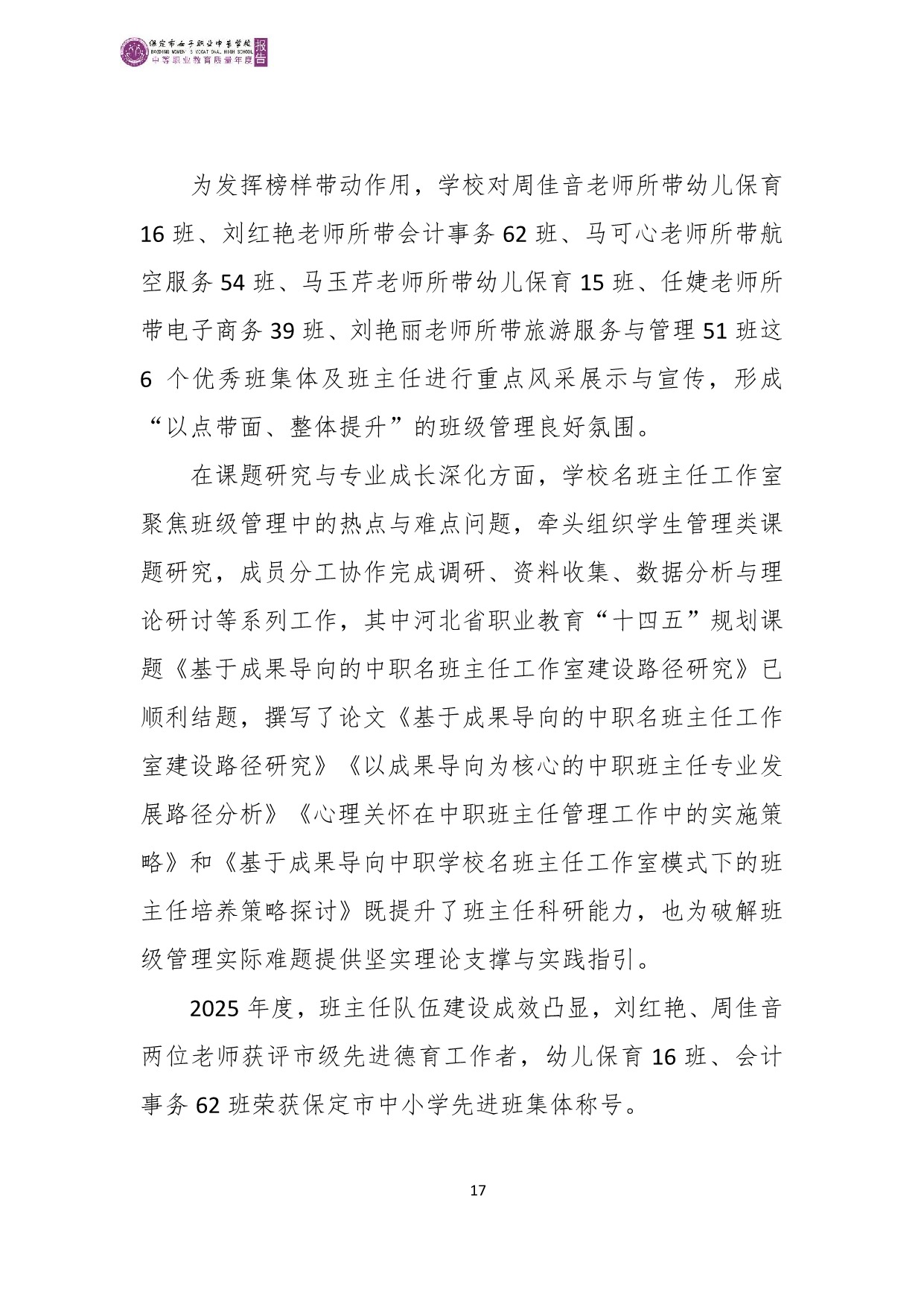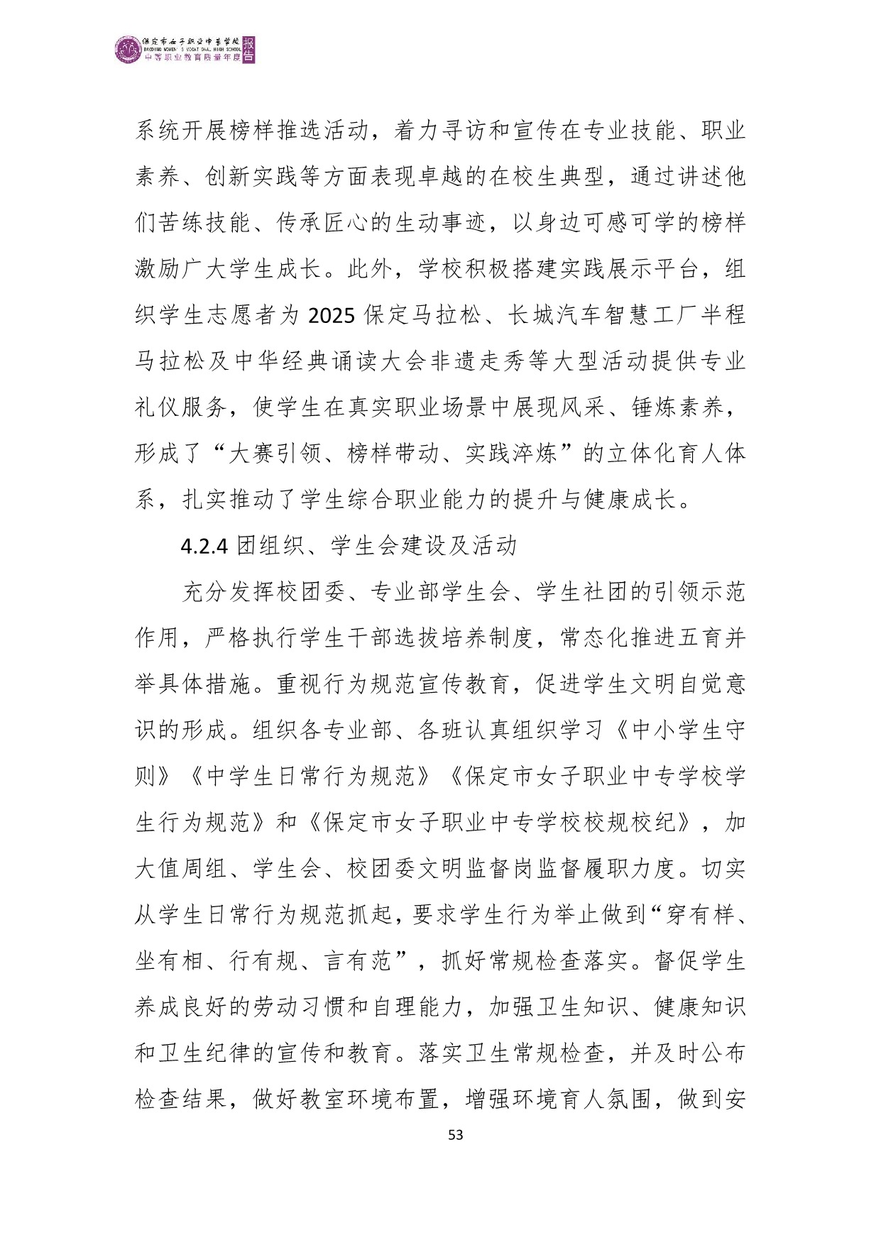 保定市女子职业中专学校2025年度质量报告
