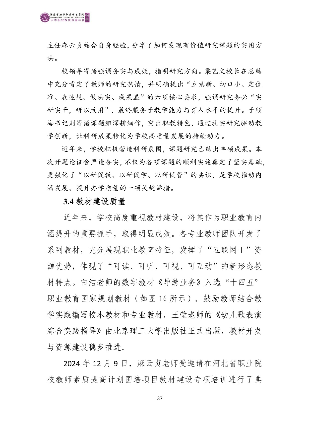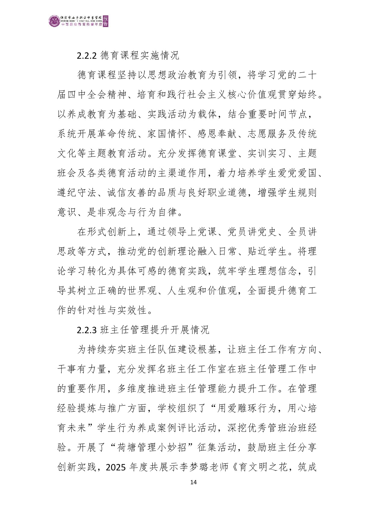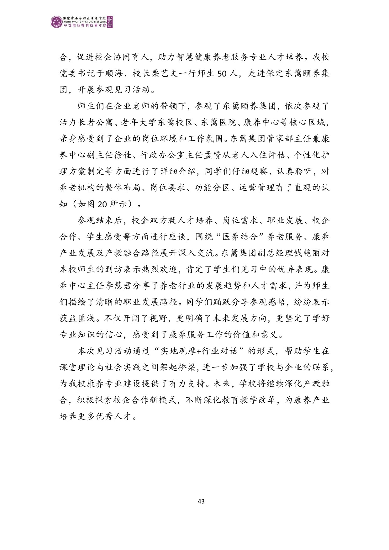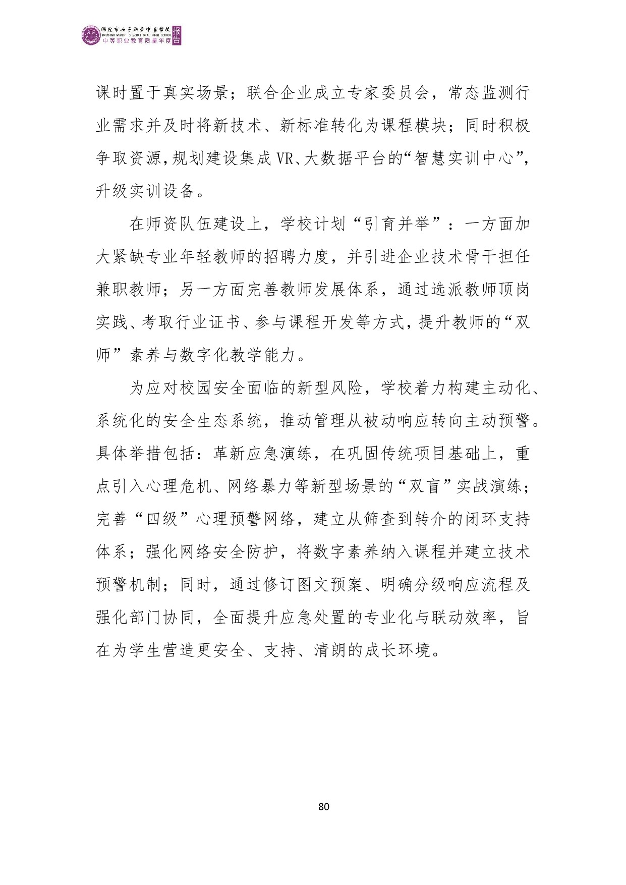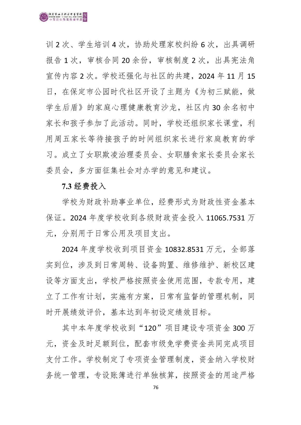 保定市女子职业中专学校2025年度质量报告